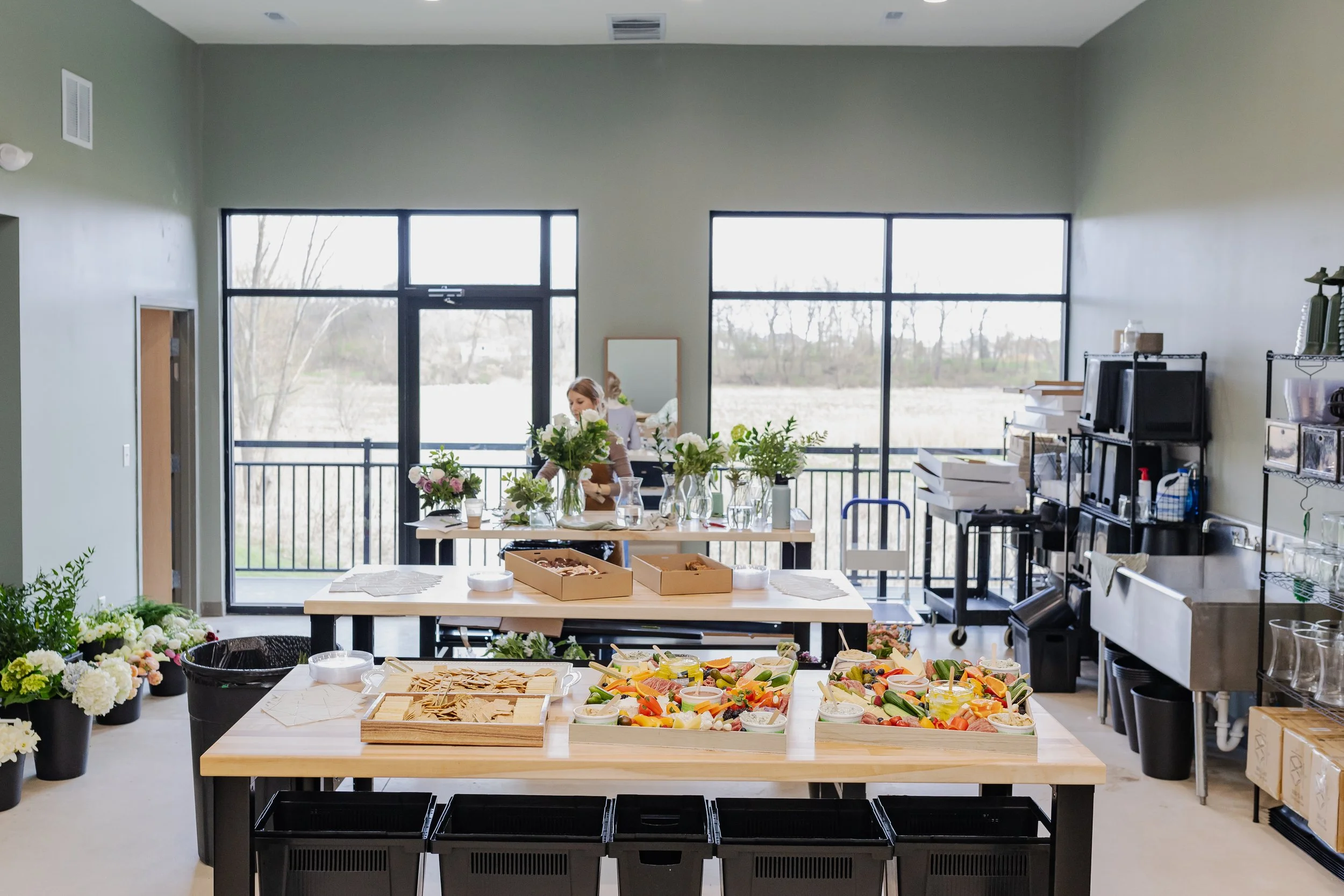 Image of our workshop, filled with flowers and food, just before we opened our doors in April 2025.