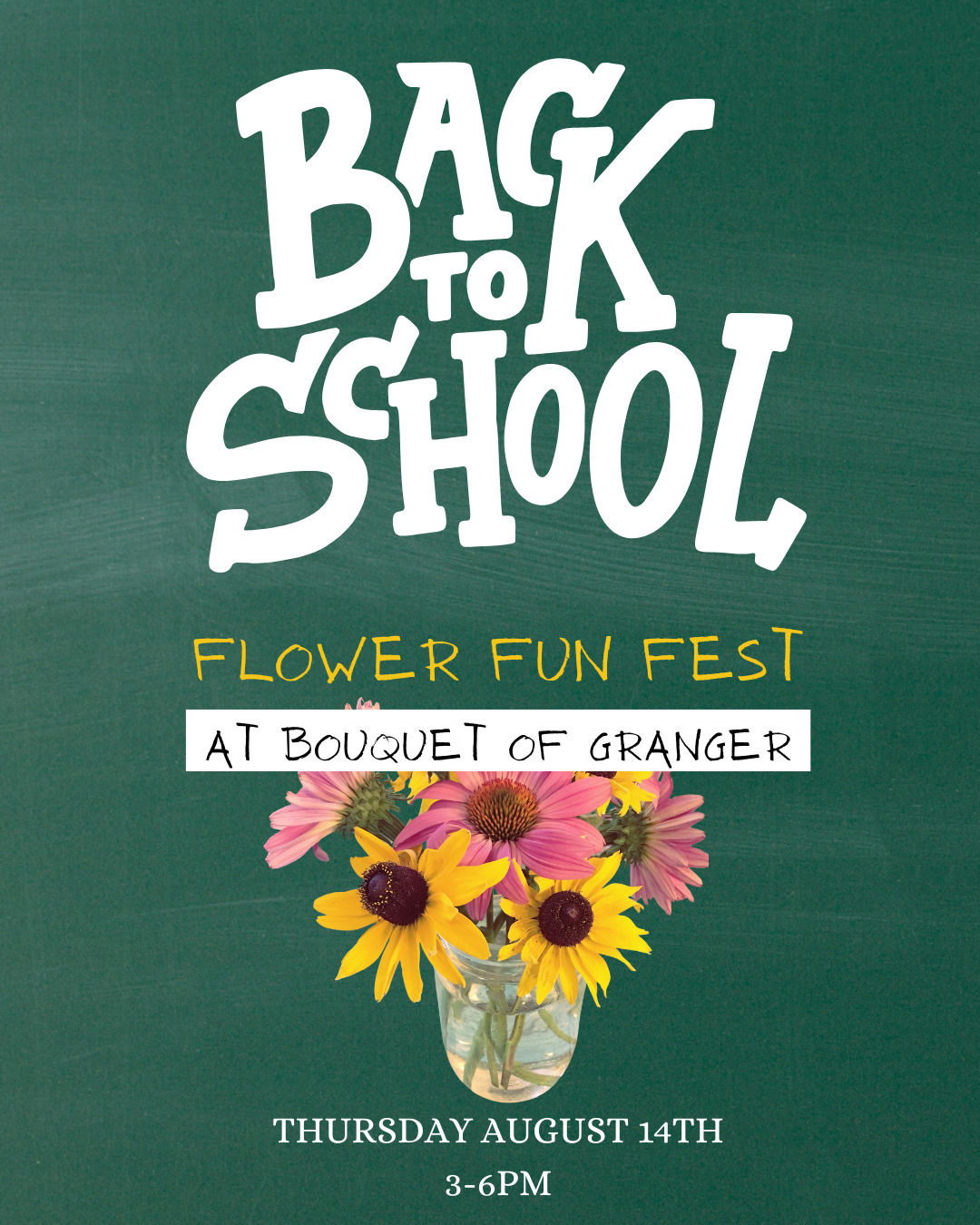 Join us on Thursday August 14th from 3-6PM for an open house to create a kid-friendly floral arrangement. Come and go as you please, bring as many students as you can safely supervise, and weโll do the rest! Weโll provide a mason jar to fill with plenty of colorful blooms to gift to their teacher on Back to School night, or to keep for themselves as a celebration for the end of summer. The cost is $25 per arrangement, and they can create as many as they would like!